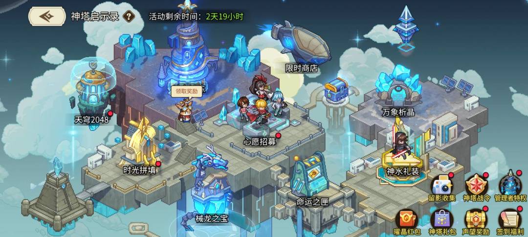 完成时光拼填内的每日任务,可获得时光碎片等奖励,完美解锁所有拼图还可获得“神塔自选宝箱”奖励!