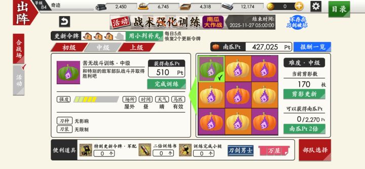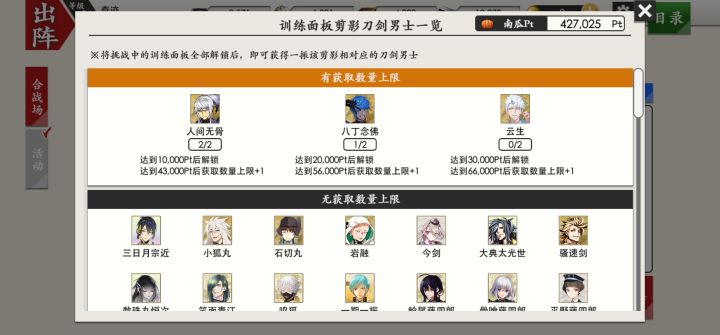 目前战况是这个活动已经打到40多万了,刀男只差三把刀就全部集齐了,现在差谦信景光,日向正宗和千代金丸。不过小判已经不多了,感觉后面就是随缘了。