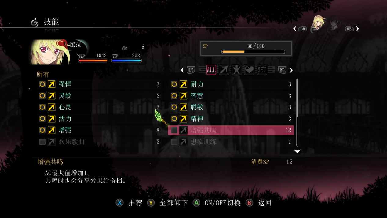 那么角色如何成长呢?答案是属性加点,本作有一个专门用于提升属性以及学习技能和招术的“百合宝珠”,通过升级获得点数,根据自身的喜好进行加点即可获得属性的加成,满足特定条件即可学会新的技能和招术,非常直观也非常容易上手。