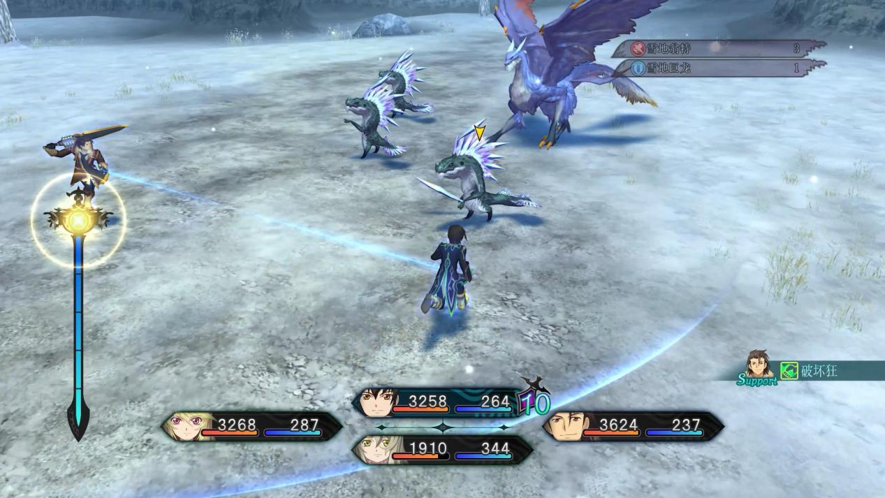 本作在战斗中的所有操作,消耗的AC都是1,也就是说你的AC值的大小直接等同于你能够连续行动的次数,高威力技能并不需要消耗更多的AC,能够更好地融入到连段中,而使用高威力技能的代价仅仅只有消耗更多的TP,TP则可以通过普通攻击直接回复,因此释放技能完全没有任何的负担。普通攻击与技能、技能与技能都可以随意衔接,可以轻松打出一长段小连招。这样的改动无疑对刚上手的玩家会更加友好,但同样也砍掉了不少的技能派生和战斗技巧,因此对于本作的基础战斗系统只能评价为易上手易精通,缺少持续深挖的价值。