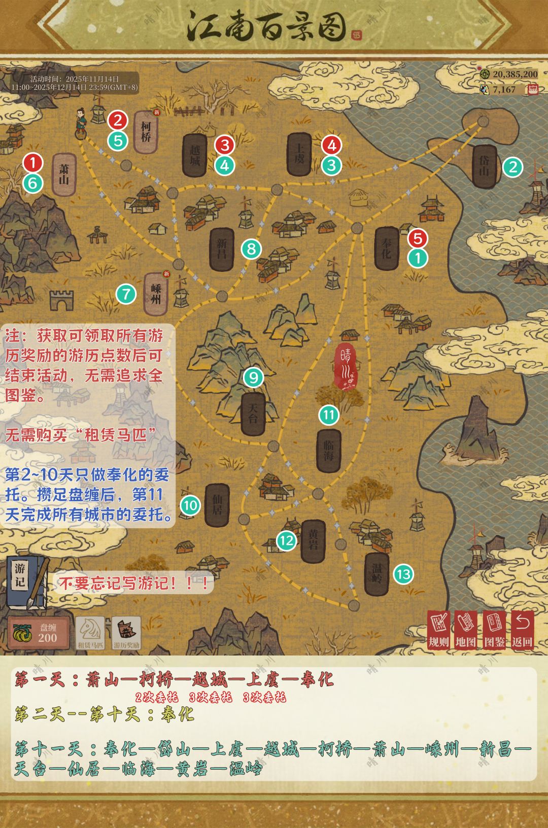注:获取可领取所有游历奖励的游历点数后即可结束活动,无需追求全图鉴。