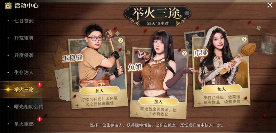 2、流派选择,也就是举火三途中的王稳健、兔娘、爪琊三选一!