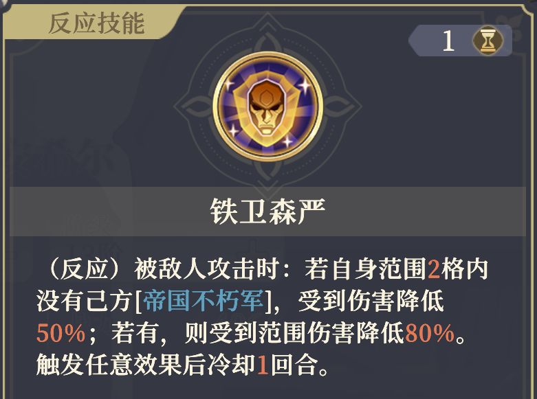 - 帝国不朽军只会继承基安希尔的场外防御值。协防属于场内防御值修正,相关的防御值提升不会继承给帝国不朽军。