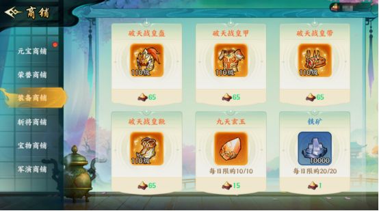 推荐:优先兑换九天玄玉,便于后期(150级左右)的装备突破。不建议兑换装备,装备可以通过剿匪和山海异兽玩法免费获取。