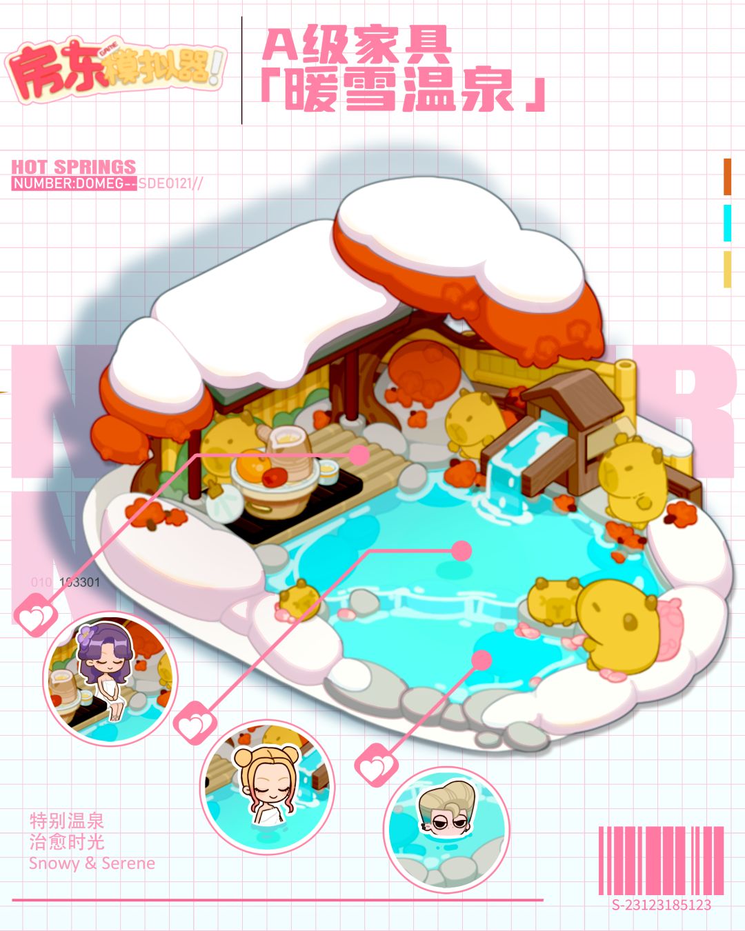 集齐所有拼图碎片,即可获得A级家具【暖雪温泉】!🛁❄️