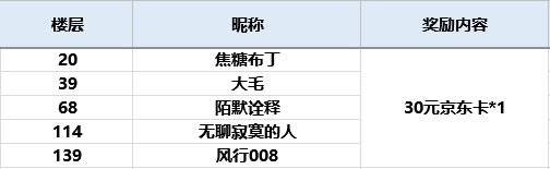 我们将从正确参与活动的旅人中随机抽取5位玩家,送出30元京东卡*1