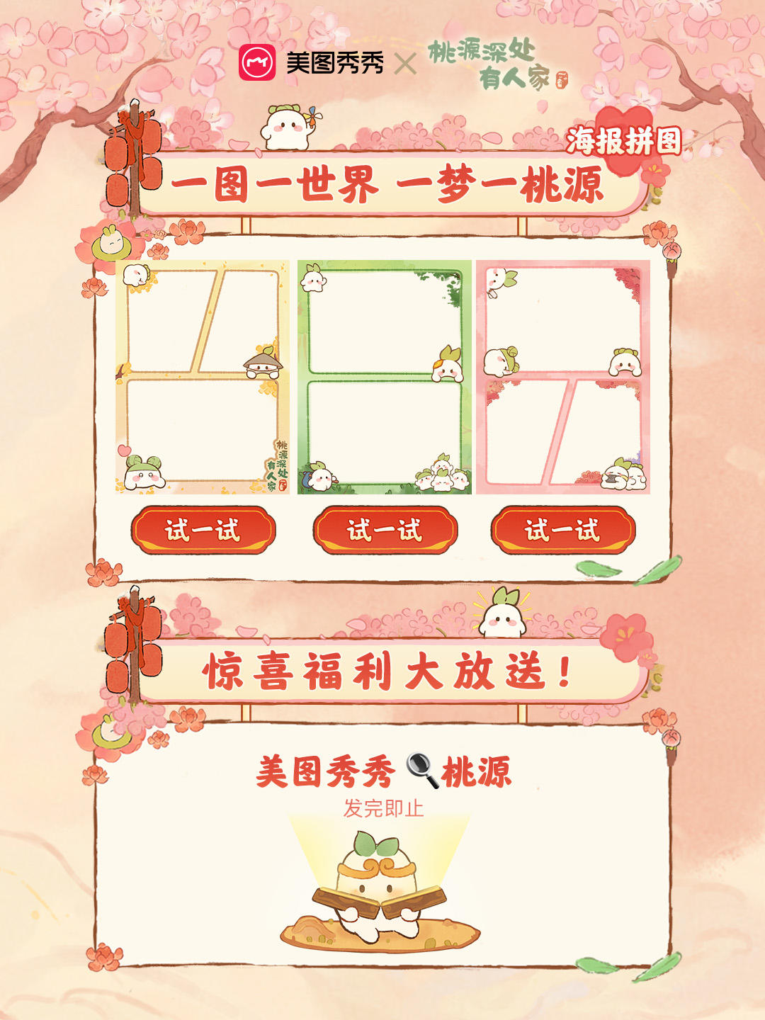 此外,在【美图秀秀】搜索【桃源】,还有惊喜福利放送,数量有限,山民们可不要错过萝!