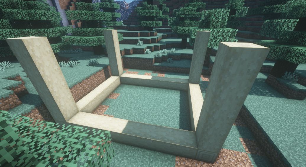 用去皮云杉原木在上面的基础上叠加一层,记得整体往左移动三个方块~