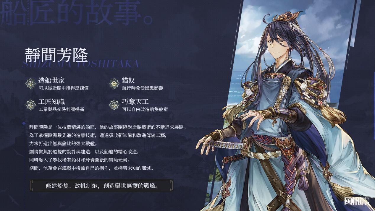 日本战国乱世,静间芳隆出身于以造船业闻名的贵族世家。面对外来商船的冲击,“只要用钱就能买到好船”的观念盛行,本地造船产业被严重忽视。