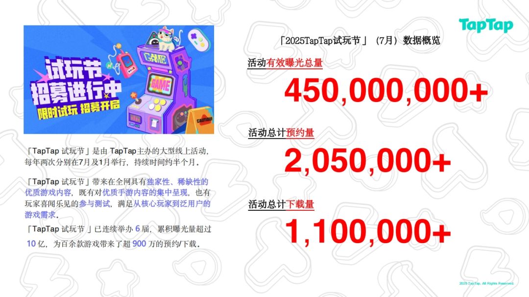「TapTap 试玩节」已连续举办 6 届,累积曝光量超过 10 个亿,为 100 余款游戏带来了超 900 万的预约/下载。