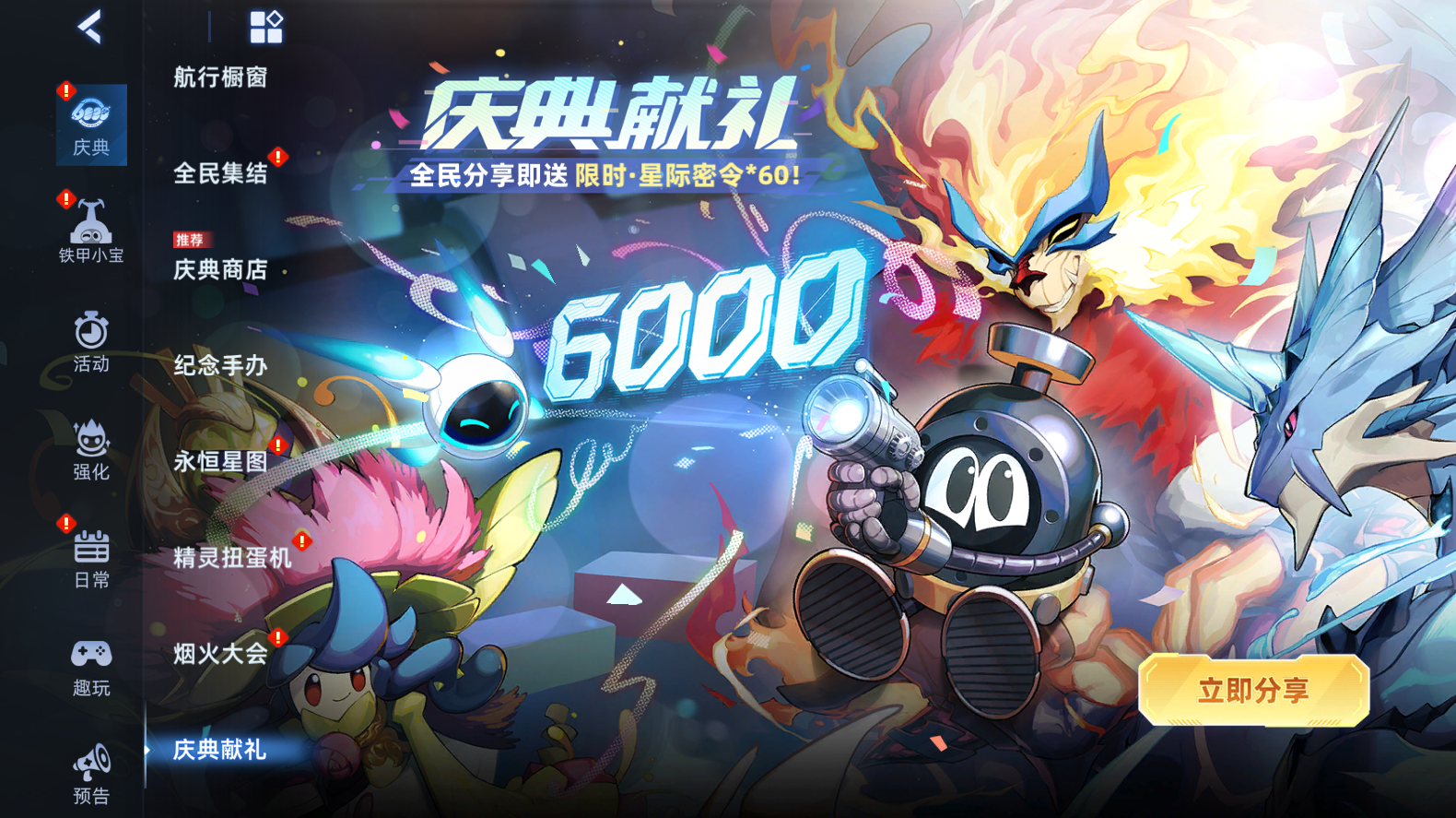 完成分享即可获得60个限时·星际密令,小赛尔们一定不要错过!
