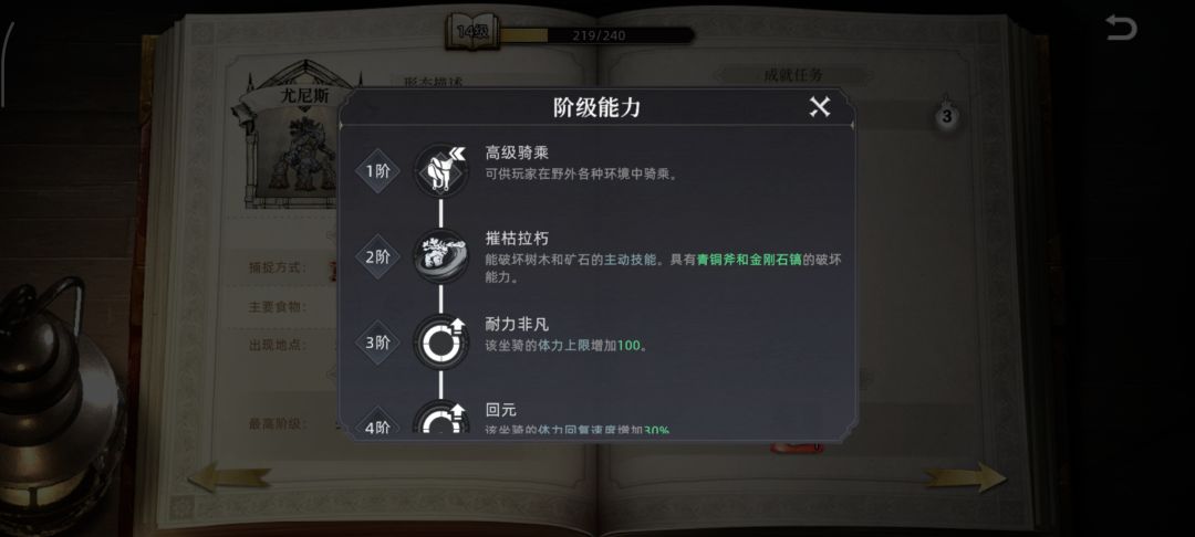 五:尤尼斯:帮战第一获得,入手的最大难点是如何加入榜一帮会并且让管理在帮战结束之后把大奖分配给你,二阶进化同时拥有采集木头和石头的能力