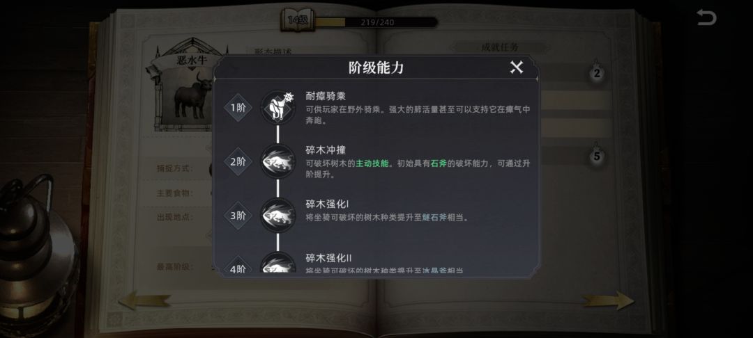 一:恶水牛:使用金币捕捉器捕捉,捕捉成功率30%,保底5次必成,二阶进化开始拥有采集木材的能力