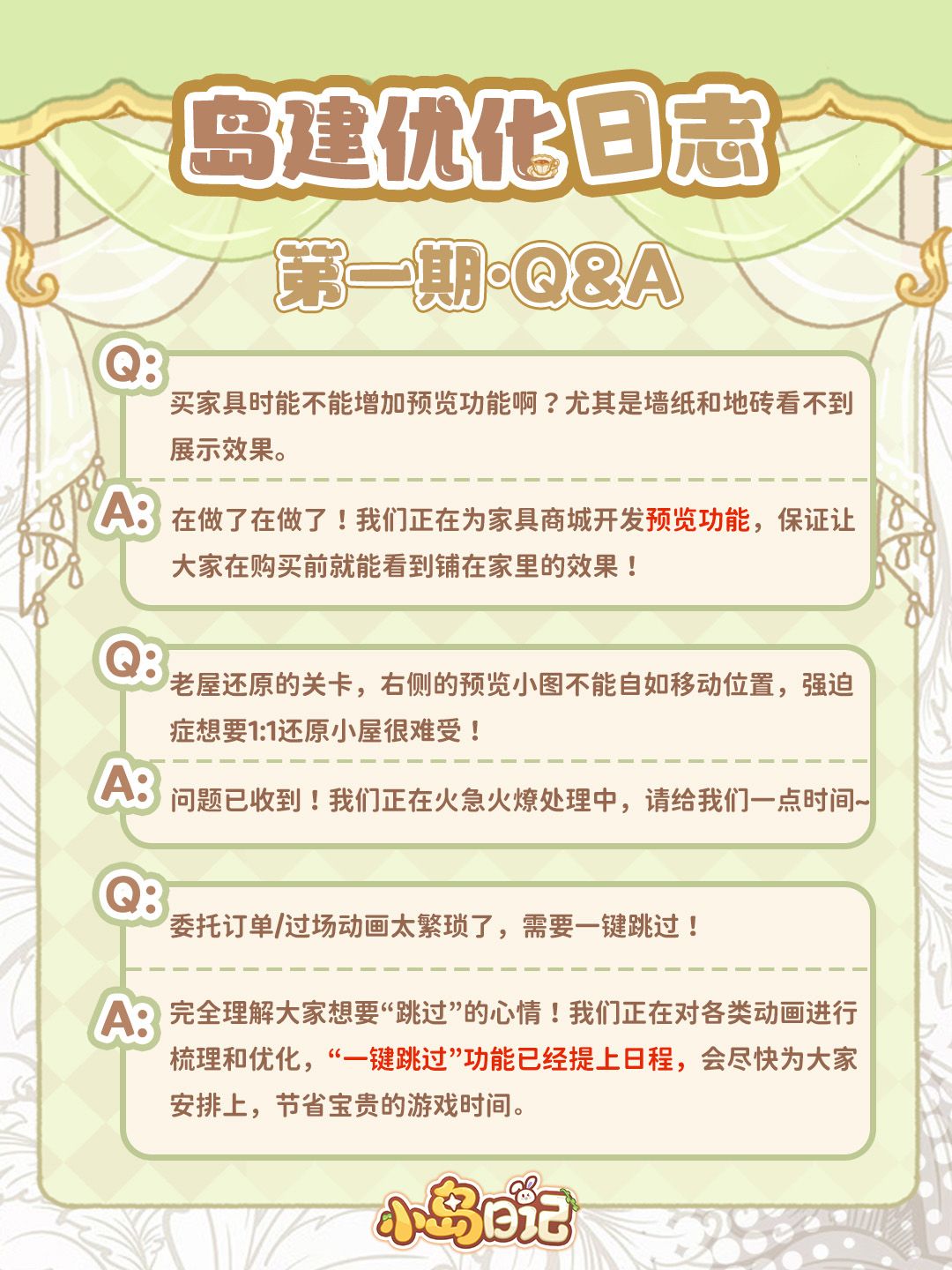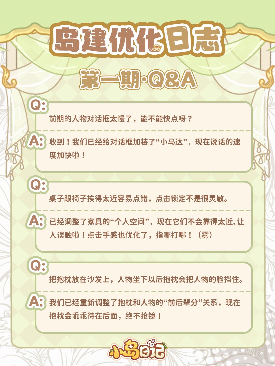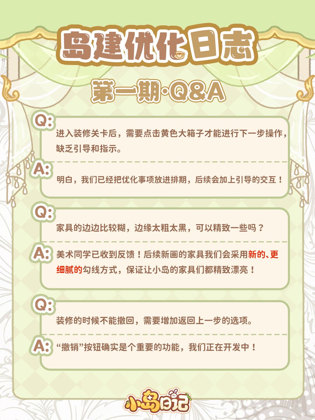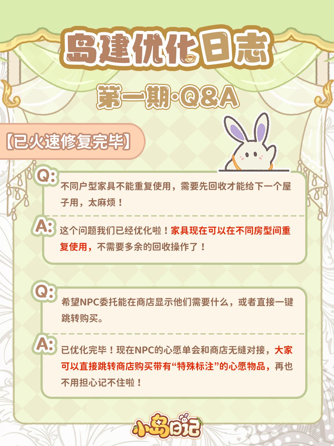 我们也从中挑选了一些大家最关心的问题,在这里向各位岛民汇报一下目前的整改进度~