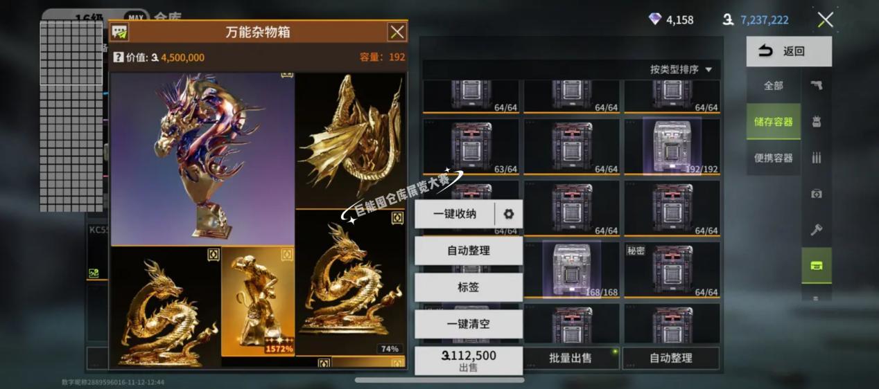 小萤:来了!价值百亿身价的大大出现了!又是一箱箱的价值连城的币子、一箱箱镭钻大金,还有海量SS3服饰大金,小萤直接跪了——(答应我,你一定参与仓库展览大赛好吗~给萤火虫们一点小小的震撼!)