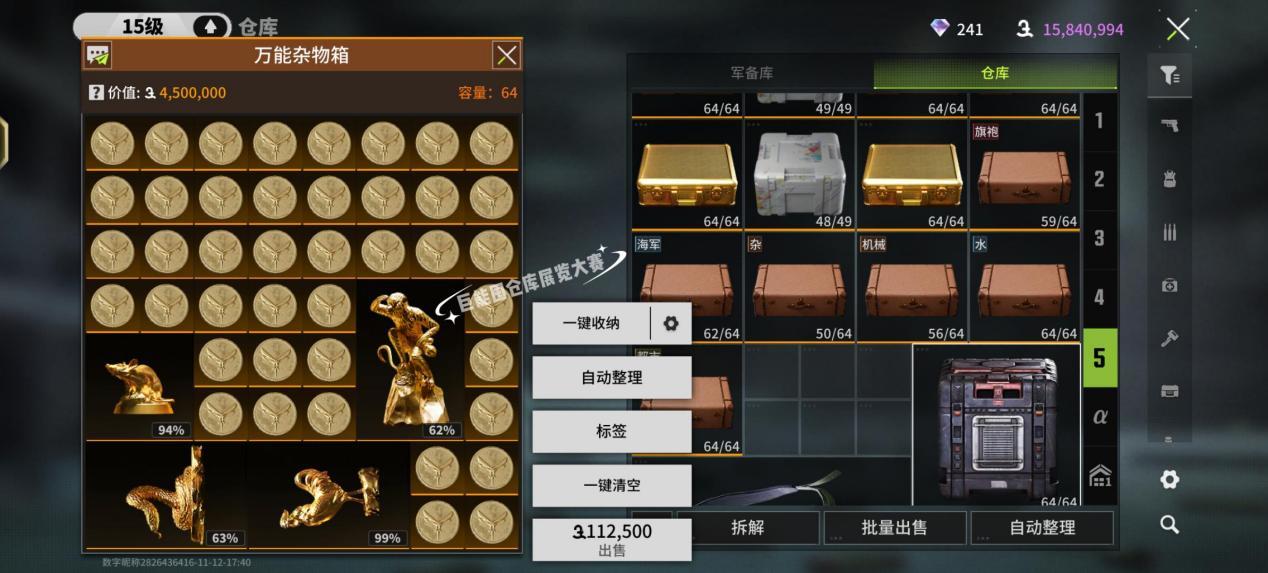 小萤:惊蛰大大与阿渔大大听闻比赛,现场直接前往战场进货,一位前往工作室拿满了一页仓库网易黑猪大金,一位则前往红区,囤满了1页仓库的镭钻物品,以此参赛!既有实力,又有物资,这节目效果属实拉满了!