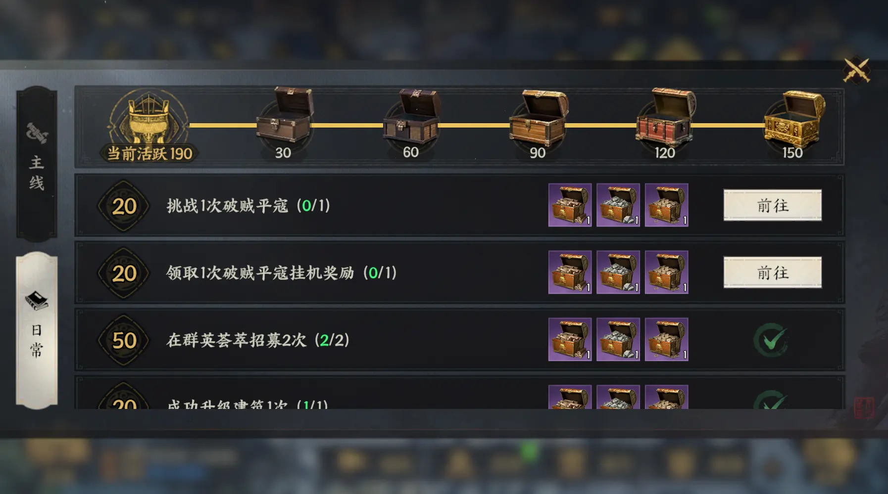 破贼平寇是技能书的核心来源。该玩法没有挑战次数限制,失败也不会损失预备兵,如果初次挑战失败,不妨调整阵型多尝试几次,可能带来惊喜哦。
