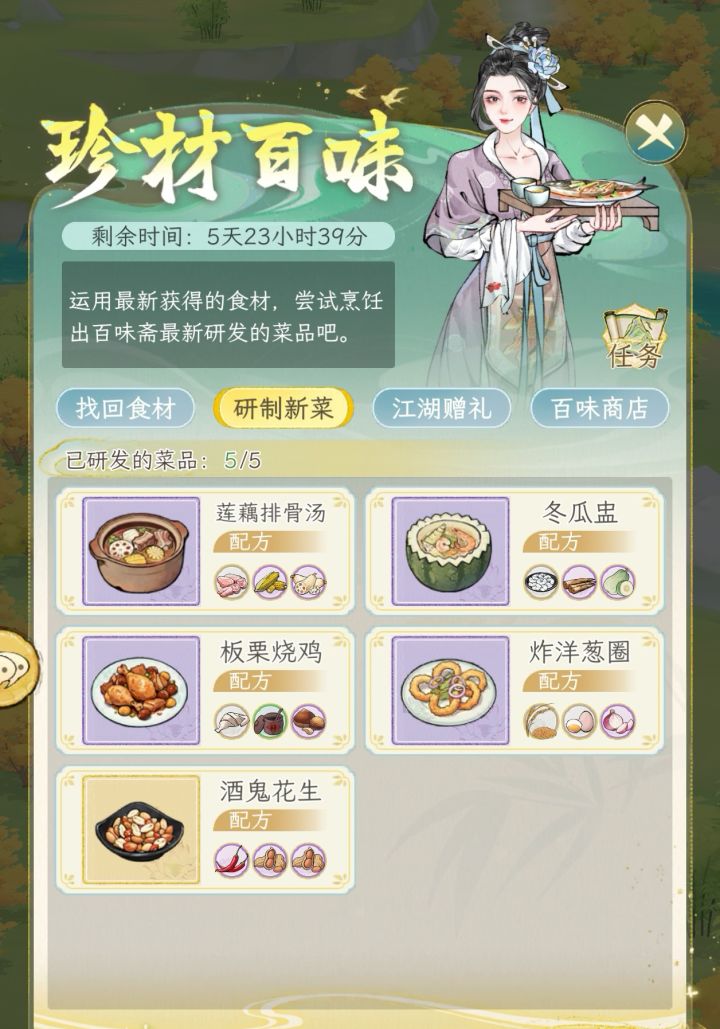 注:目前江湖赠礼所需要的珍馐级别菜谱,高级食材最好是活动食材,不然可能没办法触发前往赠送按钮。