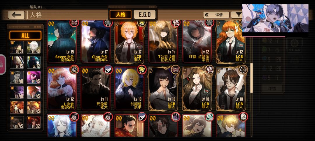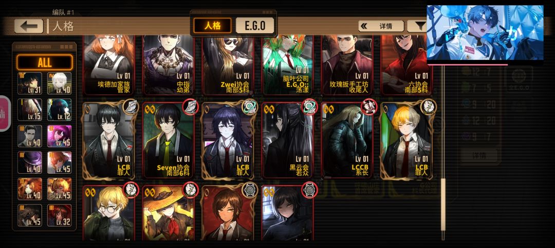 我的队有点缺T,浮士德有液袋,有两个联动EGO(没有格里高尔联动),罗佳有烧伤火舞台那个EGO。