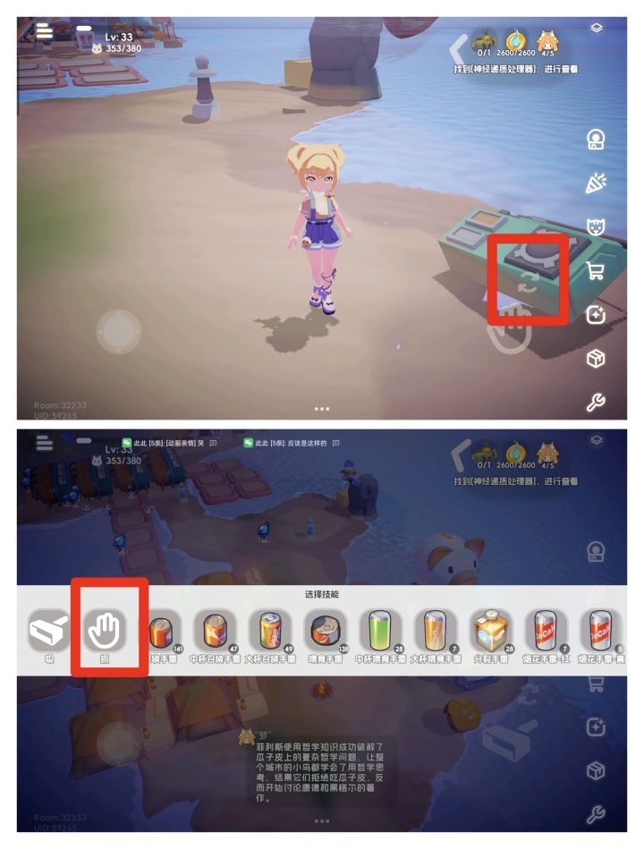 吸尘器右上角有个转换标志(p3),戳后划到最前面有“抓”,戳它!(如果不需要改可点击空白处退出)