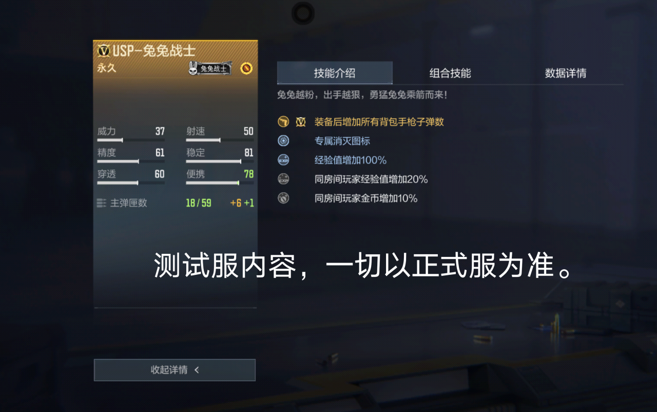 USP-兔兔战士作为新版本的全新枪械,可谓是萌点十足,同时瞄准速度加快的能力又能带来特别的玩法,玩家可以在战斗中享受别样的萌感。