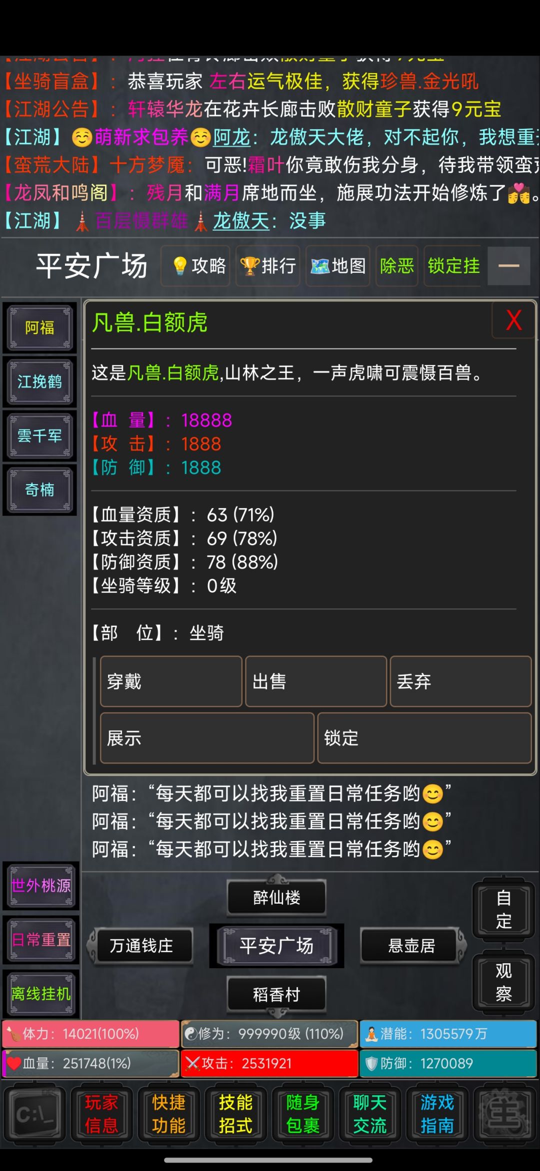 - 升级有反馈:每升1级内丹,坐骑外观会有小变化(比如凡兽内丹3级后解锁发光纹路,仙兽5级后有翅膀特效),搭配弹窗提示“属性+XX”,成就感拉满。