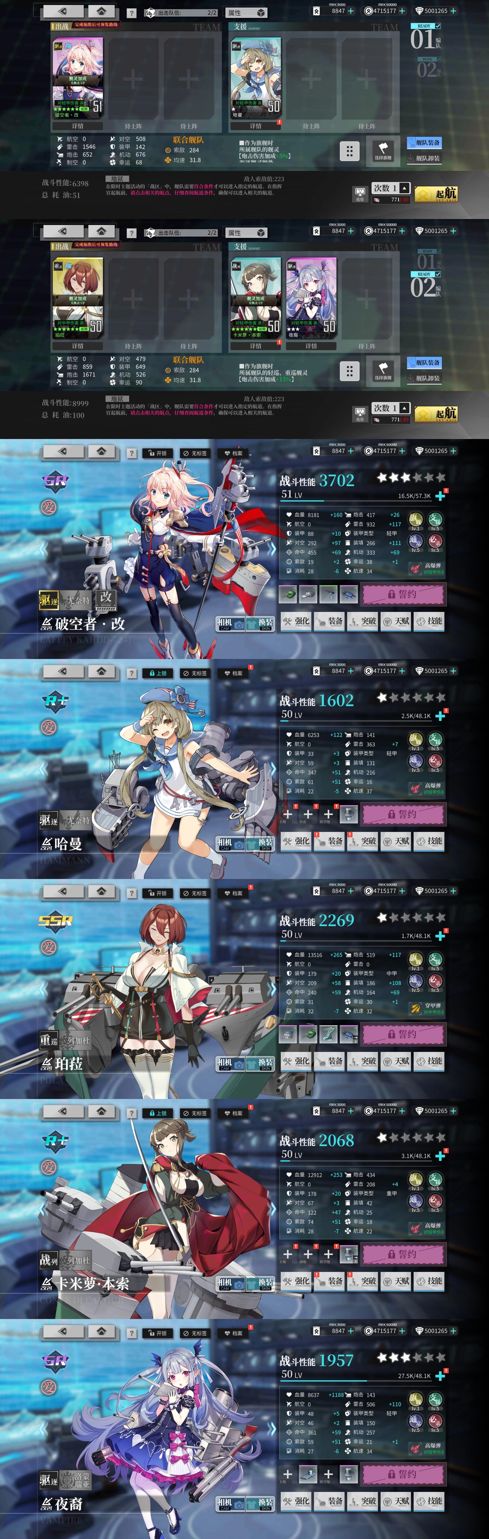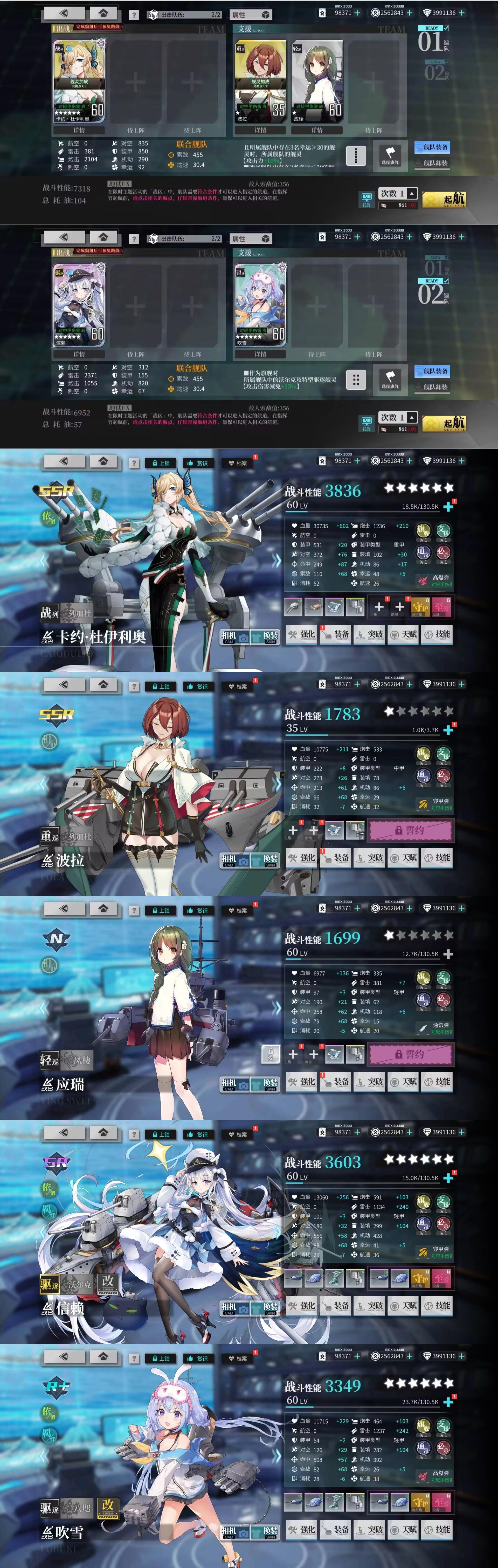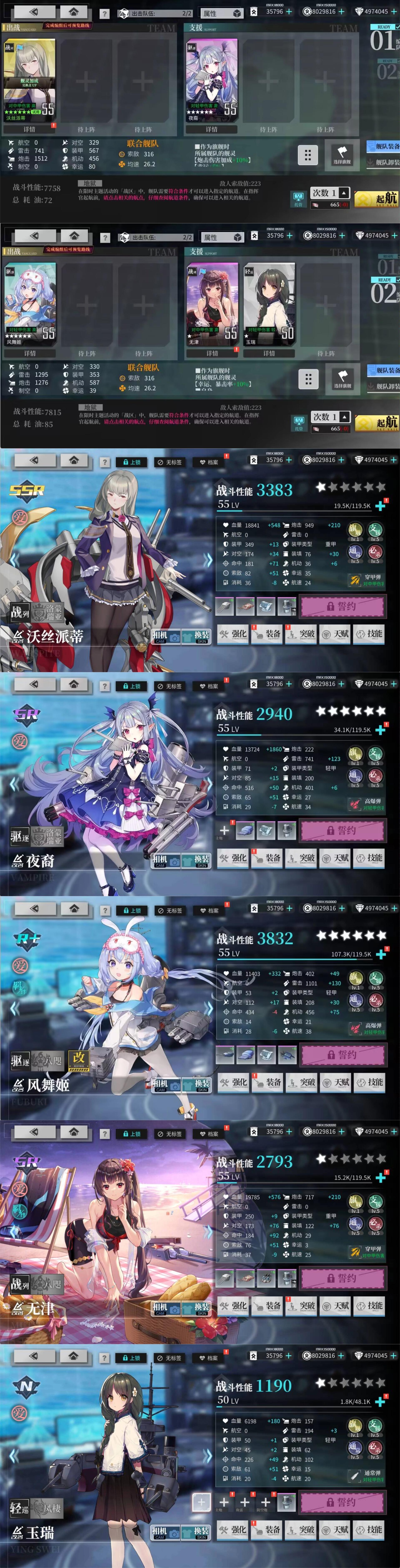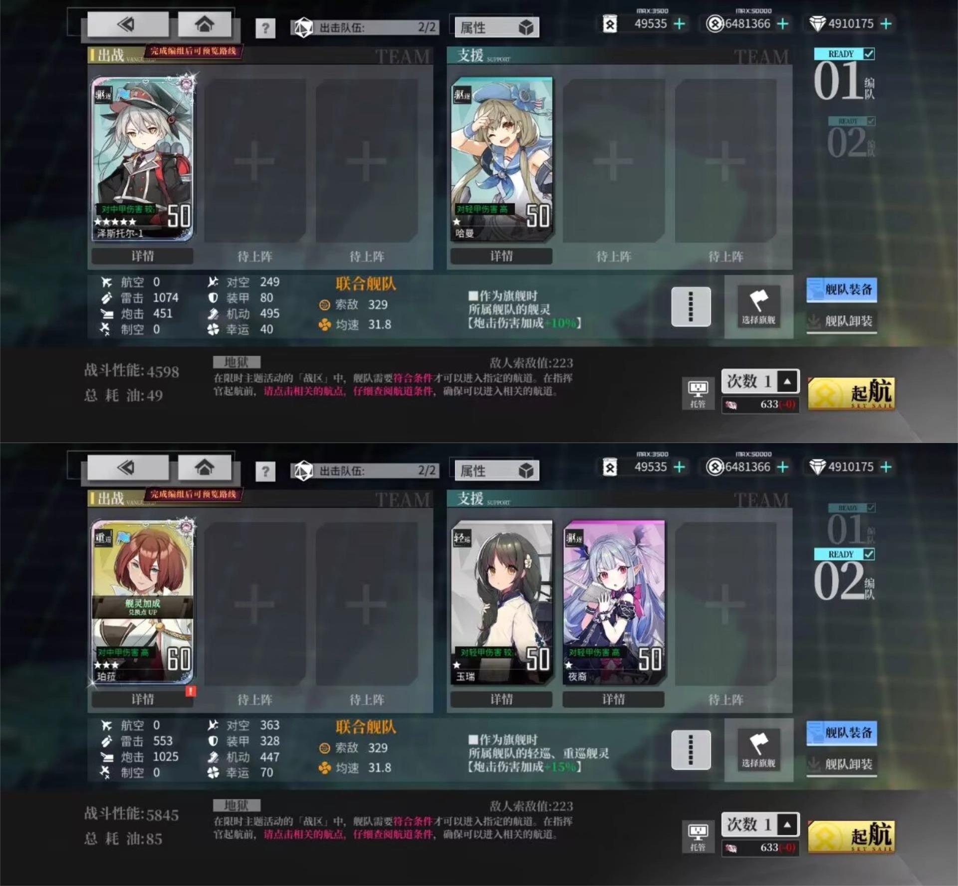 两套配队中应瑞为低耗凑数船,可根据需要替换。