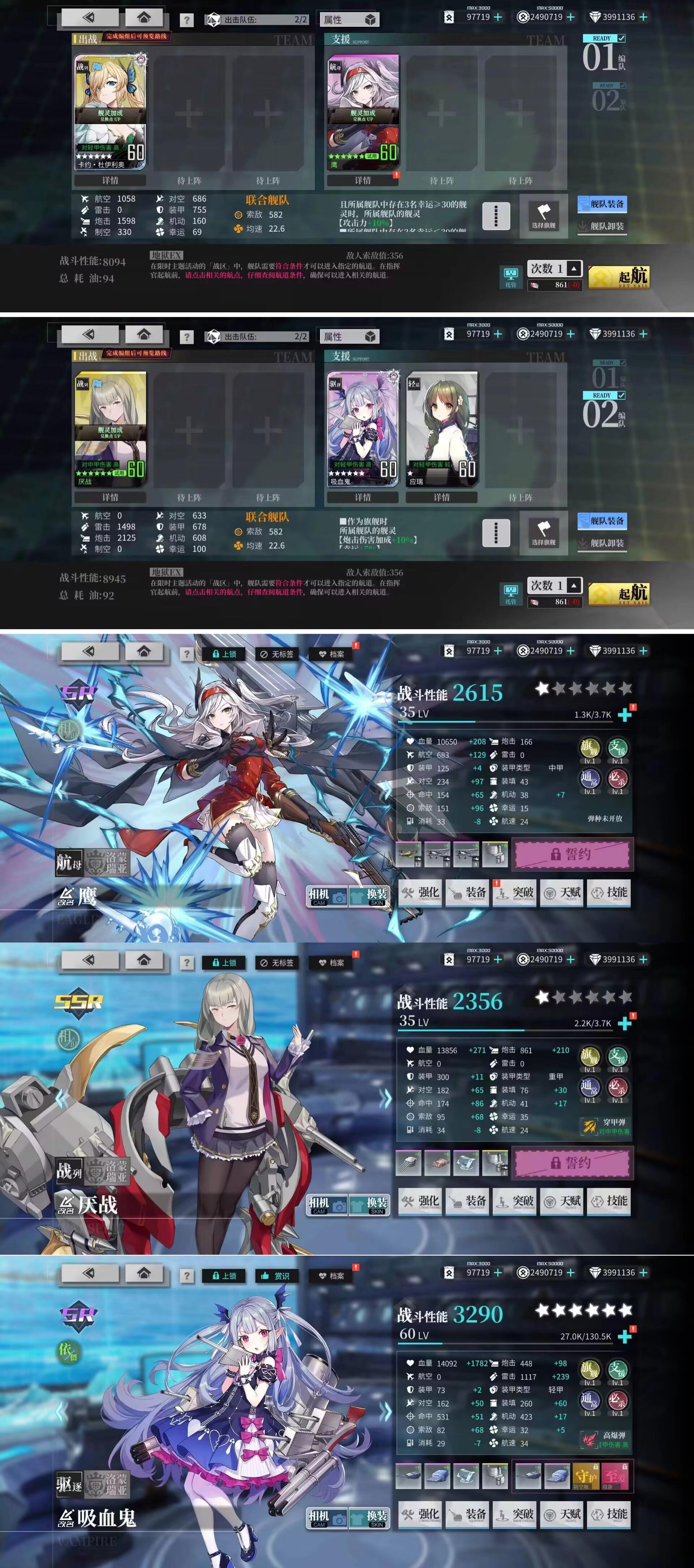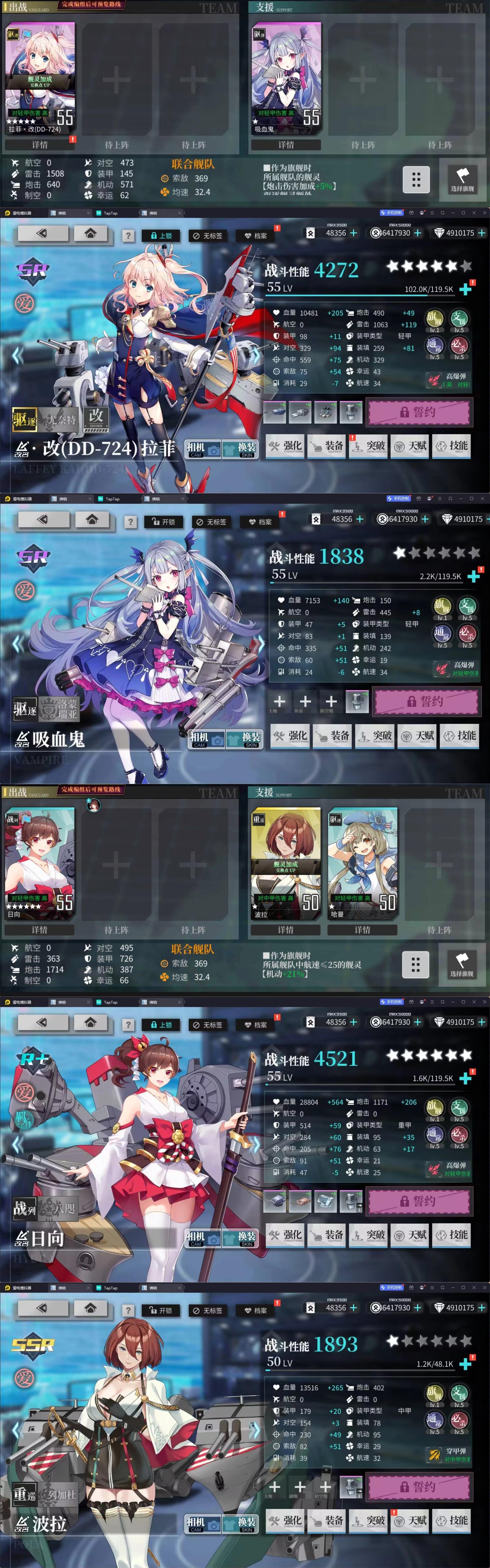 吸血鬼不可换Z1、吹雪之类的输出,如果换了要给小拉菲加练度。