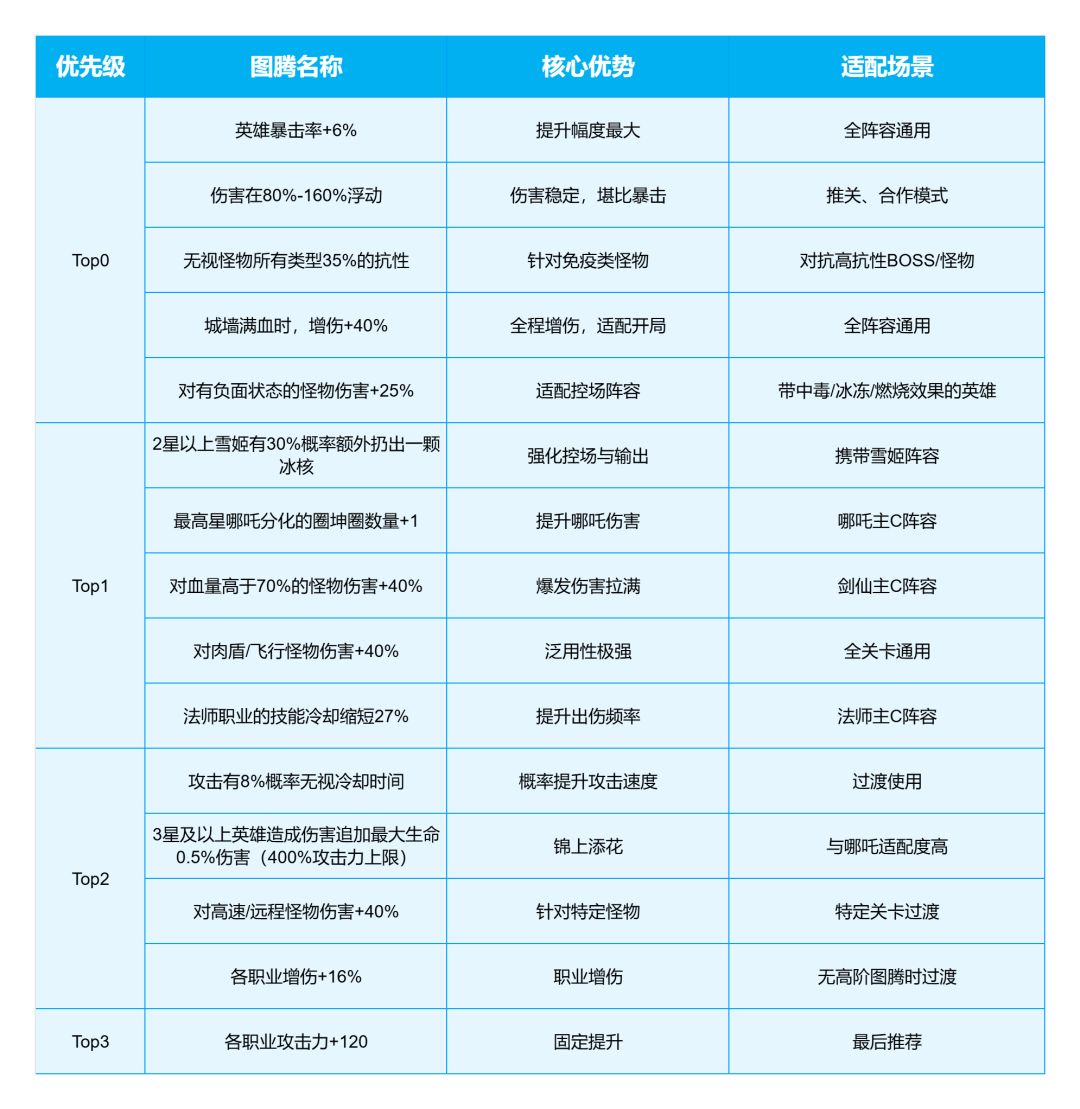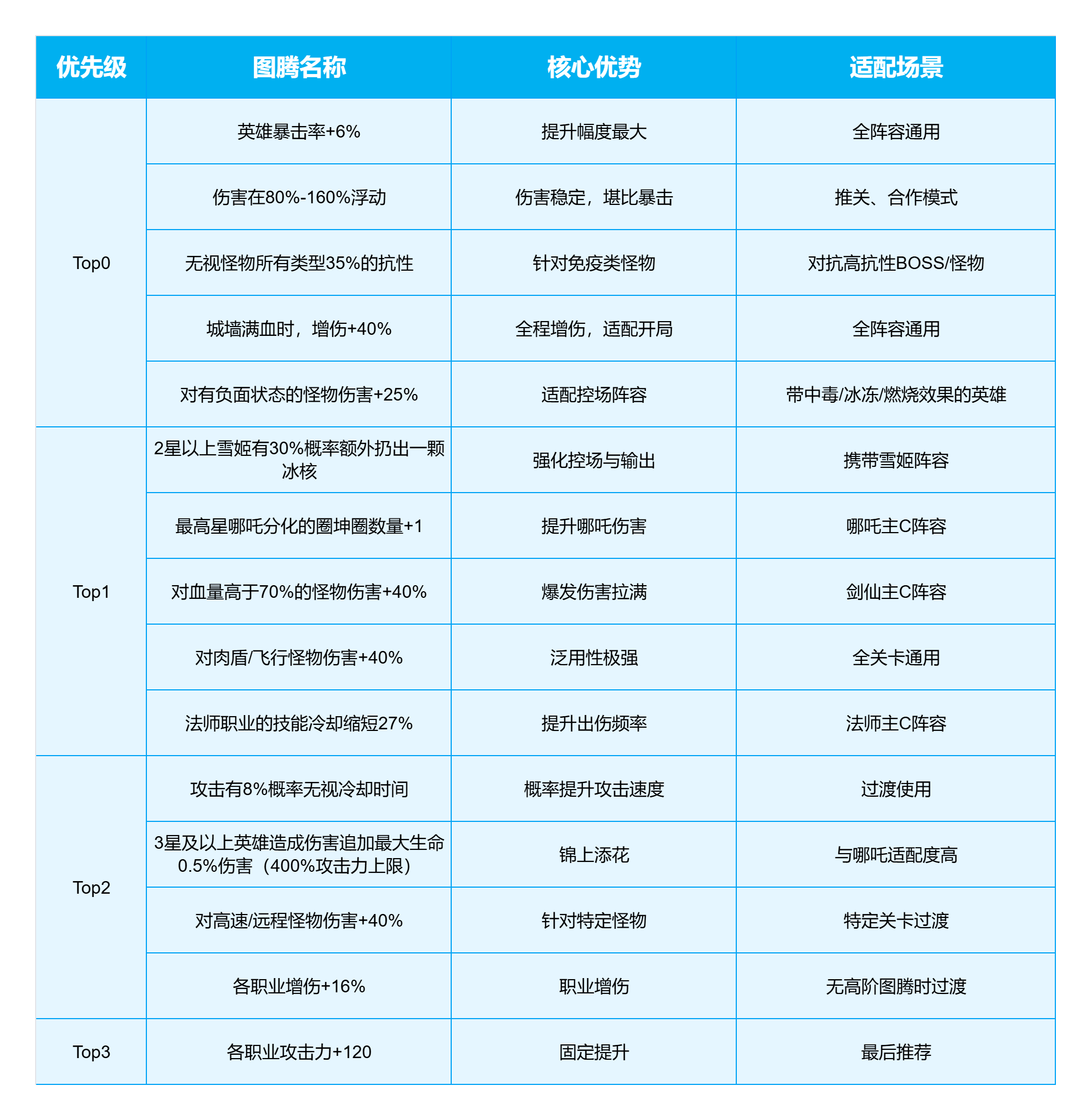 搭配免疫次数或护盾值类图腾,城墙未受伤害前可全程享受 40% 增伤,数值极高且对开局节奏帮助极大。