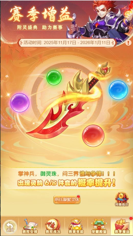 ·赛季增益时间内,凝聚灵珠时出现灵韵6/8件的概率提升