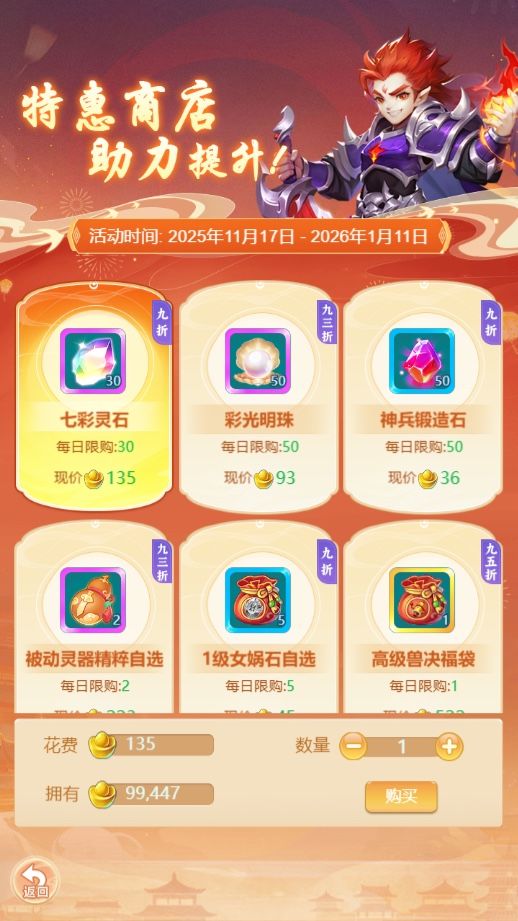 ·开放特惠商店,可消耗元宝购买折扣商品,助力提升