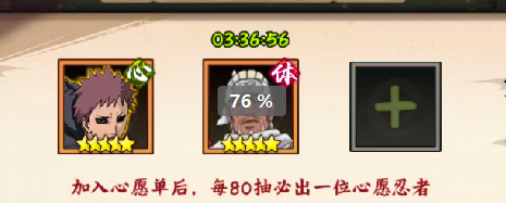 以佩恩为主要输出,长门首速造成控制效果,大野木提供速度加成,罗沙提供防御+抗爆buff,奇拉比和卡卡西补伤害。优点:需要的限定忍者不多,只有佩恩、长门、大野木,其他三个均为普通S+忍者,队伍整体养成难度不高。缺点:佩恩需要20专属、大野木需要20专属、长门需要10专属。