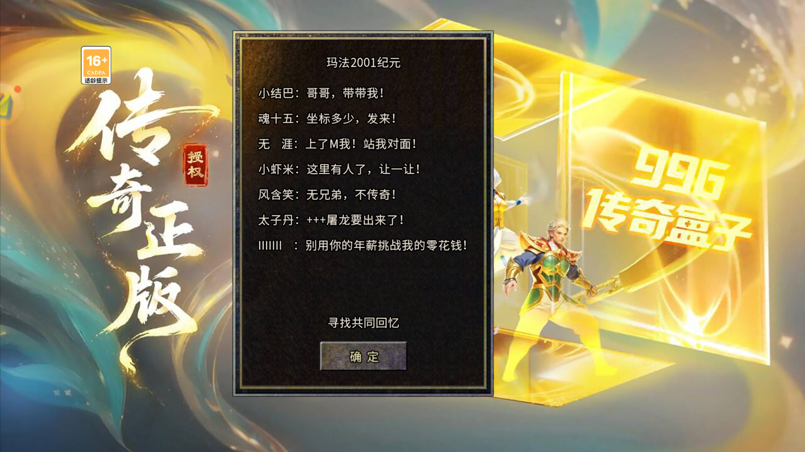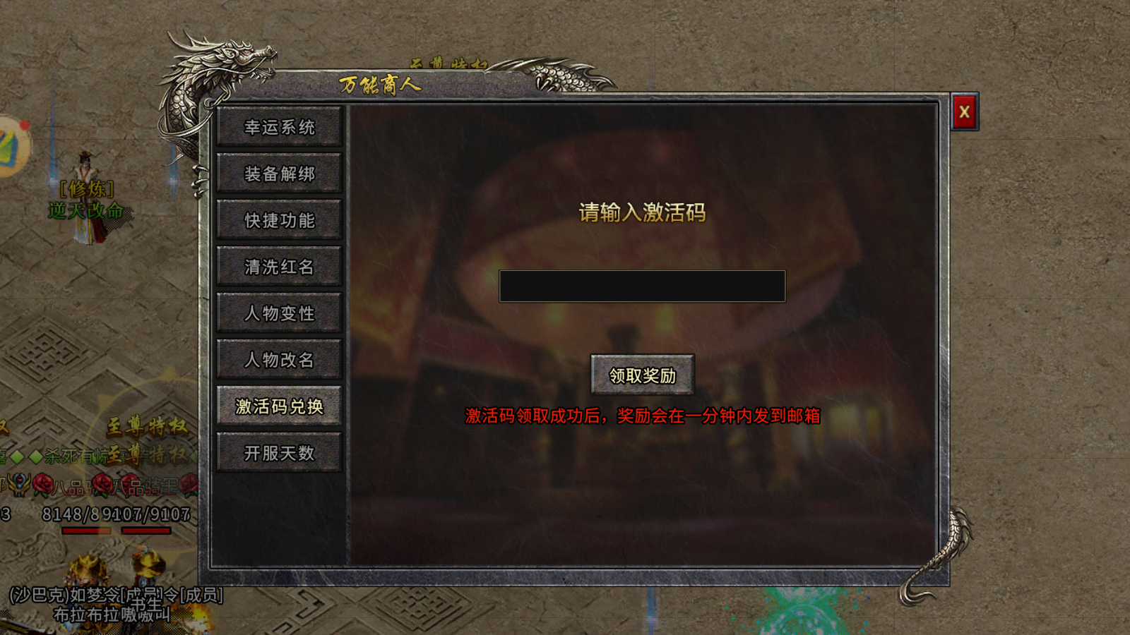 全民礼包码:输入【VIP666】,找 NPC “福利大使” 领 20 万绑定元宝 + 200 瓶红药 + 30 分钟特权卡,开服必备;