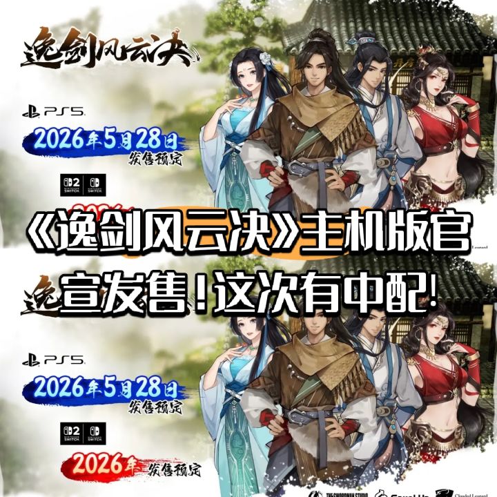 近日,曾获Steam平台“特别好评”的国产像素武侠RPG《逸剑风云决》,于11月12日由发行商云豹娱乐正式宣布登陆主机平台PS5版本定于2026年5月28日全球同步发售,Switch 2及Switch版本预计于2026年内陆续推出,主机版将首次收录中文与日语全程配音,并追加日文、韩文字幕,同时免费附带两款Steam付费DLC![[TapTap表情|TapFamilyxdoro2_粉狗比心]](https://img-tc.tapimg.com/market/images/101c7e3200596fe8e03765080b467fb8.gif)