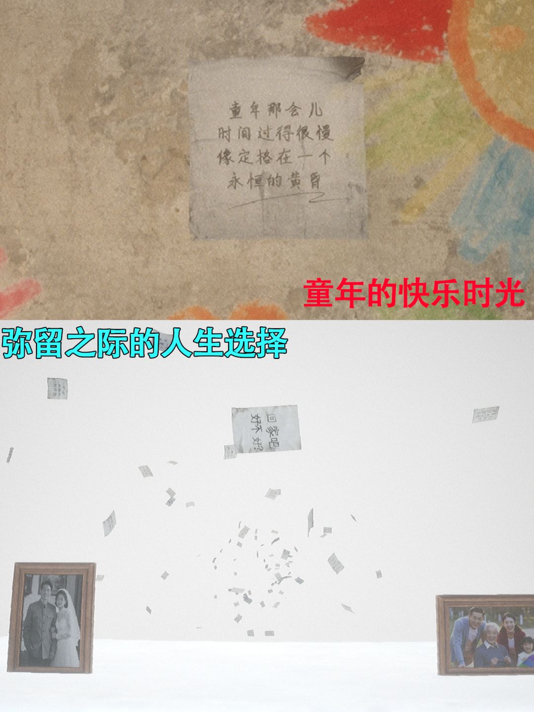 剧情内容真的深入人心~很容易产生共鸣感!哪怕是简单的几句对白,也可以让人明白这个故事在讲什么!这个游戏讲述了人这一生从童年→成年→老年→离世的一个过程。中间少了一些阶段可能是由于参赛作品篇幅问题删减了,不过也不会影响整体的游玩体验。甚至让我更加期待这款游戏的完整版又会带给我什么惊喜!