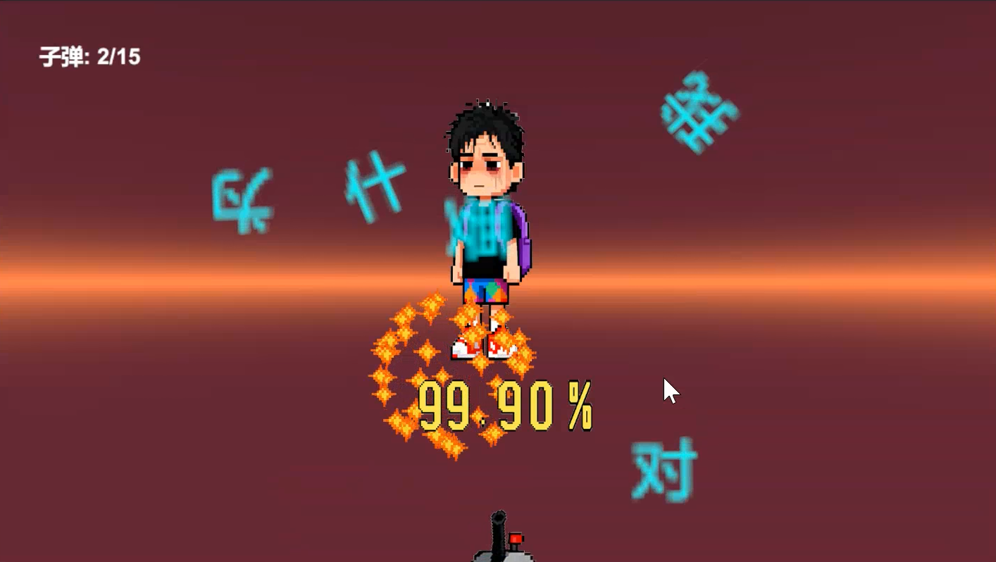 辩驳的话会以字的形式掉落下来,你需要遥控下面的炮塔左右移动击中掉落下来的字,一旦字掉下去,就会扣分,总分99.99%