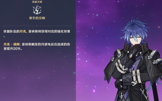 不过,从配队的角度来说的话,菲林斯相较于伊涅芙,会更加的锁配队,菲林斯的天赋“寒冬的交响”,需要依据队伍的“月兆”等级,让菲林斯获得对应的强化。