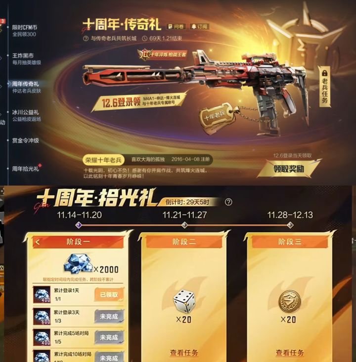 17年之前注册的老玩家,12月6号登录就能领,还能拿一万钻石,新玩家找个符合条件的老玩家组队,也能解锁领取资格。乍眼一看还挺好!但这毕竟是玩家闹起来的结果,之前领取条件是注册满10年才可以免费白嫖!