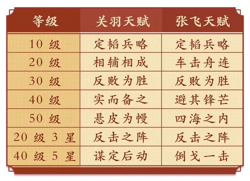 ● 兵种:两人均选择白毦兵,契合反击输出体系核心,10 级解锁佐谋之才,20 级搭配相辅相成(关羽)、车击舟连(张飞),30 级均解锁反败为胜,全面提升队伍输出与续航能力。