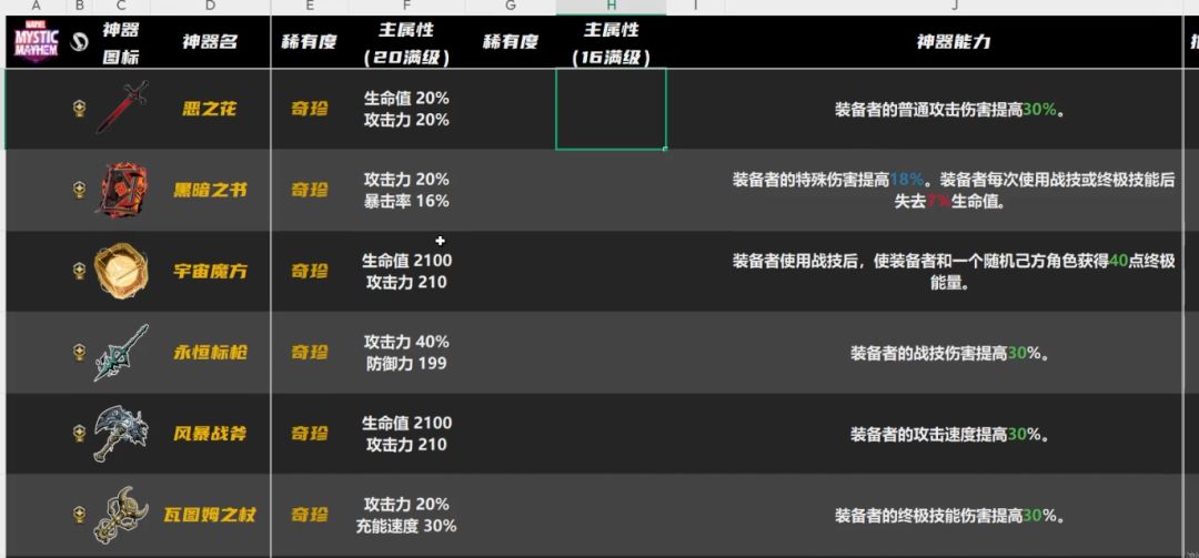 稀有神器还有自己的基本属性,黑暗之书和邪眼自带暴击率,肯定是最适合射手的!