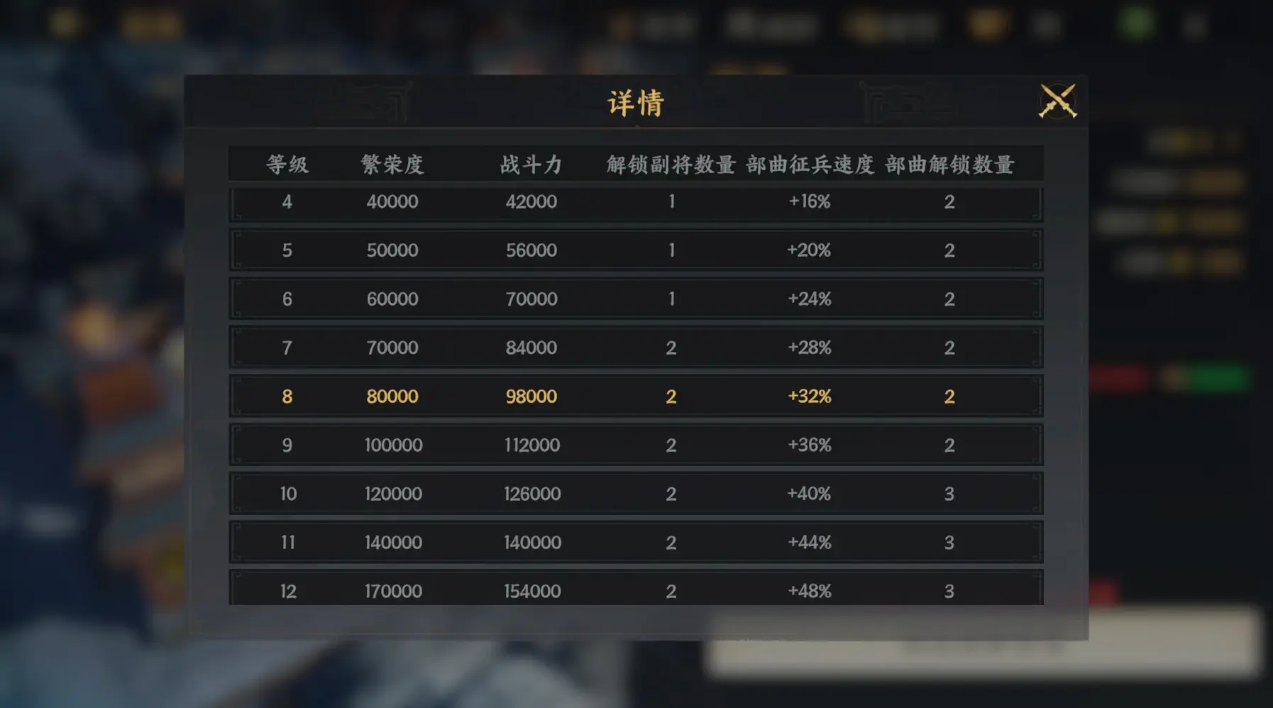 校场也同步升至10级,解锁第三只编队部曲,可更好推进破贼平寇章节,获取更多武将技能经验奖励。