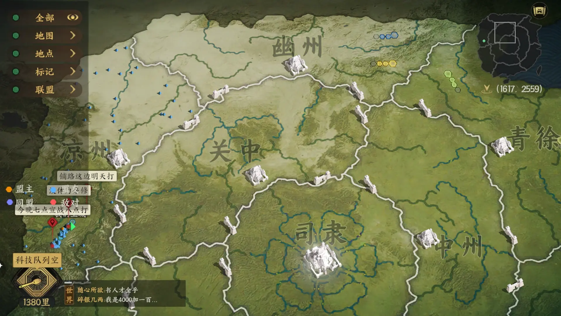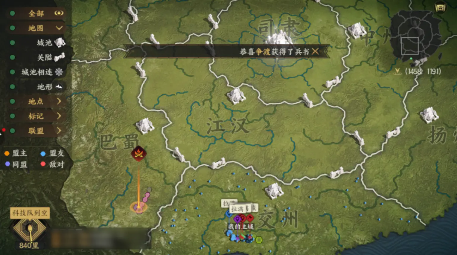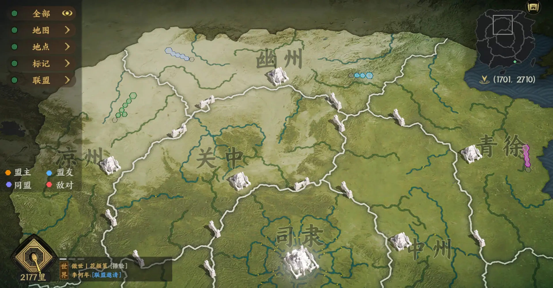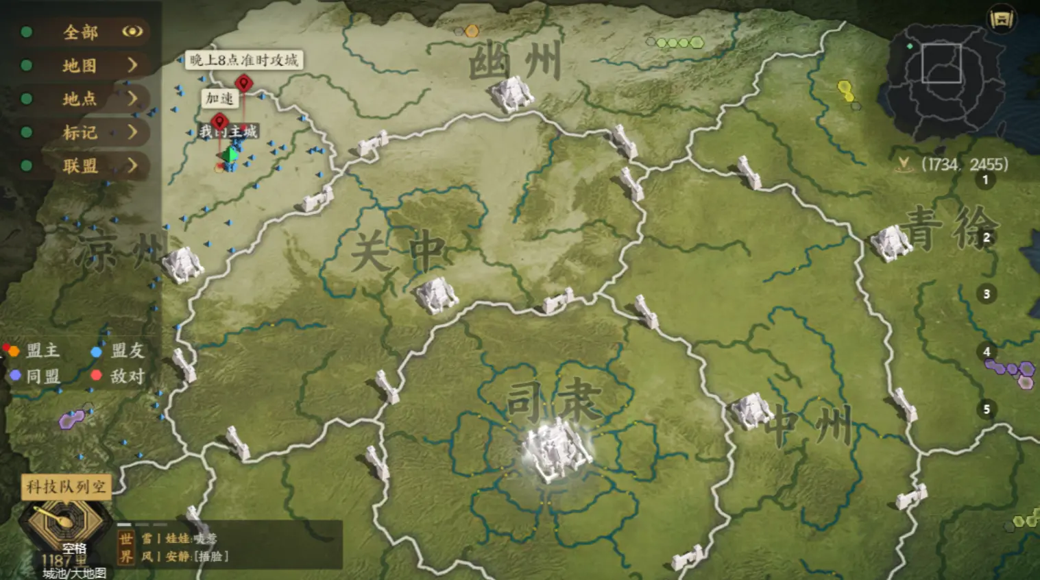 S2-6区【山河永存】落地交州,与幽州的【漢耀苍穹】,凉州【酒长歌踏九霄】结盟形成三家联军,自此交州、幽州、凉州三方连横,形成横贯九州的超级联盟。余下三盟则稳步发育蛰伏其余州,不知能否打破抗衡交幽凉联盟?