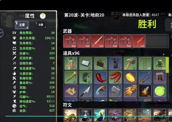 前期玩法推荐:出门带轮刃,前3波全买轮刃,将轮刃买满,并且尽可能升级到高级,高级轮刃伤害更好,自带暴击更好,反弹次数更多(1级轮刃1反弹,4级轮刃4反弹)。前期遇到运气道具和有运气buff的道具都要拿,仙女被动前中期非常强大,运气越高伤害越高。