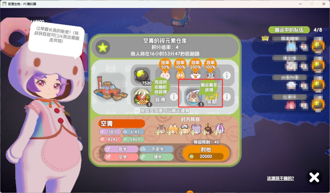 4、栗子是3星词条:本岛猫蛋搬运材料+100
