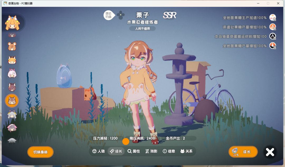 1 - 在感受野获得一个果糖的无限量仓库。用感受体还可以增加工位,让猫猫自觉搬到这里存起来。