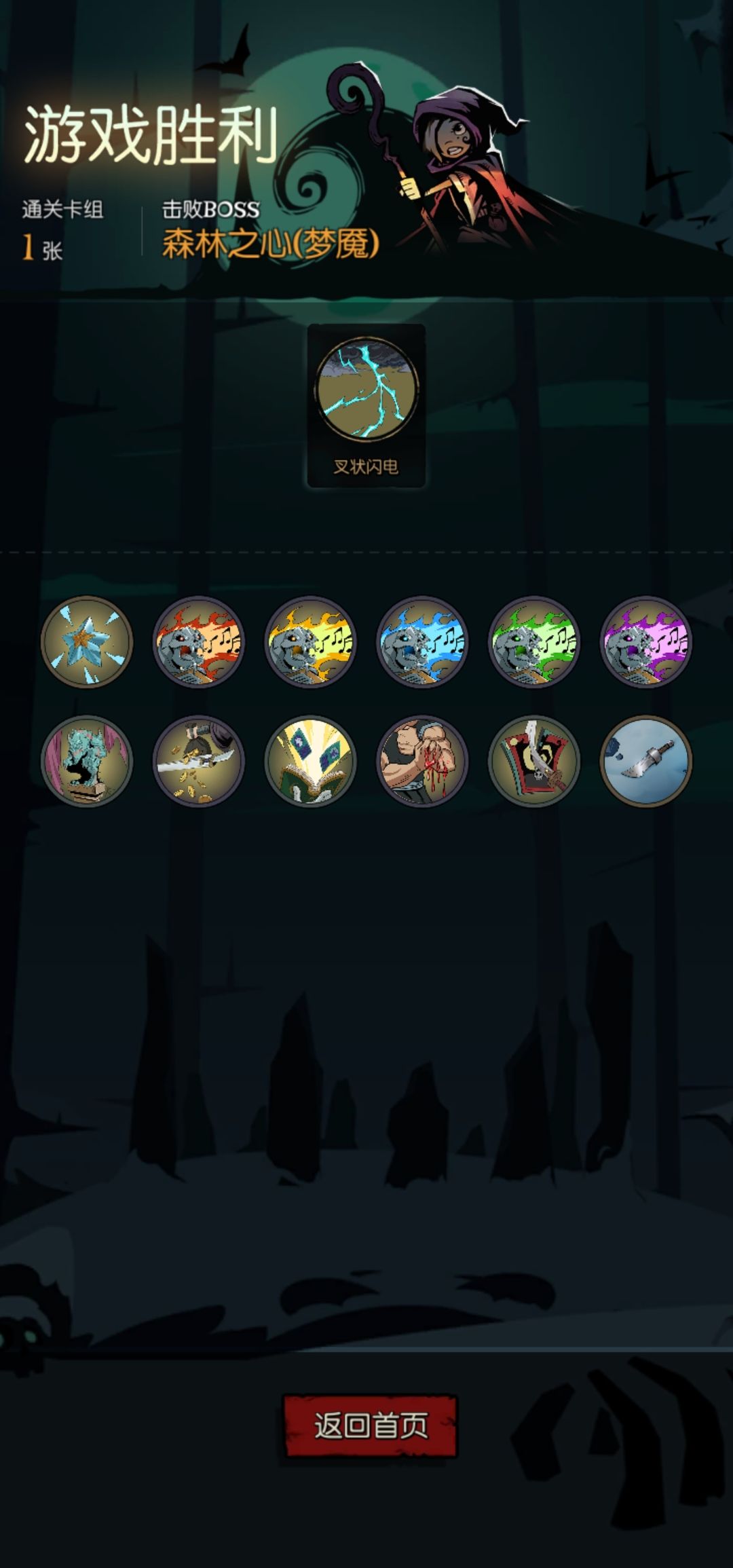 ⑦第三章购买叉状闪电,删除其余卡牌,利用小退sl叉状闪电解决其他小怪,面对最终boss时,需同时出现枯萎、毒爆