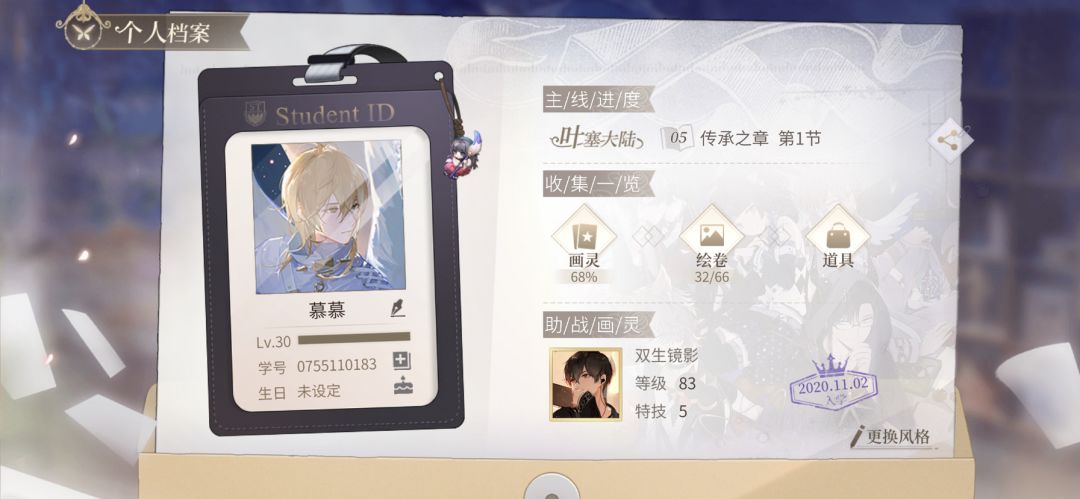 助战挂双生镜影,学号:0755110183,有需要的小伙伴可以加好友自取了。目前活动没有氪金需求了,等下次活动可以考虑把双生氪满配。