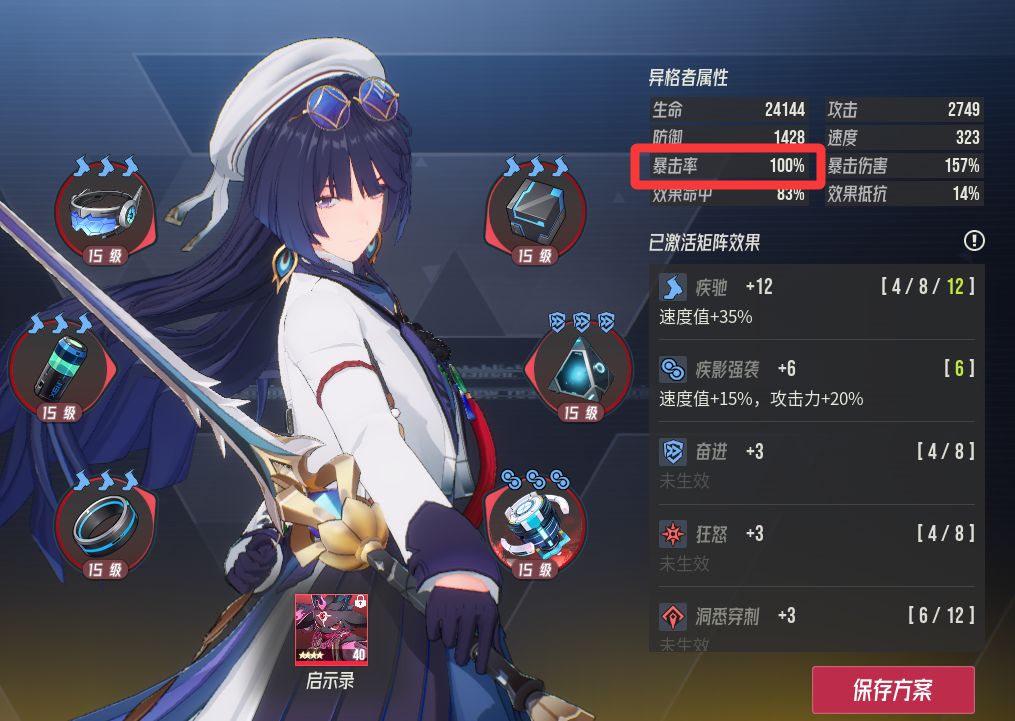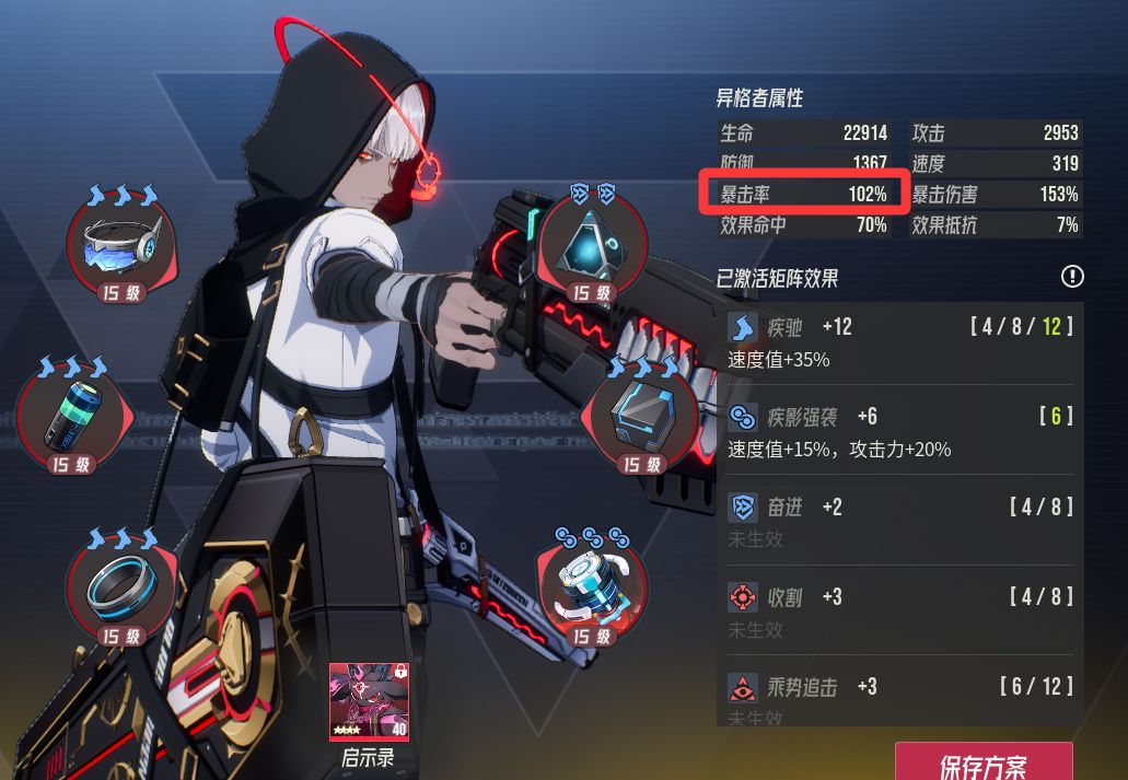 5速莉拉姆:注意因为有暗枪遗言的4*7%暴击率加成,