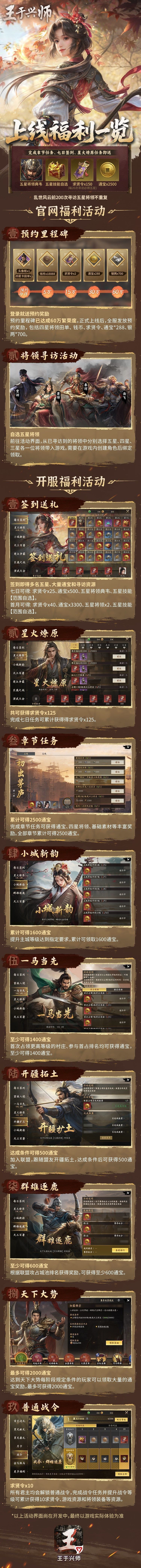 游戏内准备了以下的开服福利活动,助力各位君主征战疆场!
