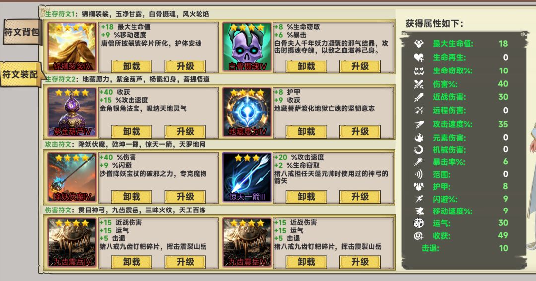收获属性:前期遇到就拿,收获属性每波会自动增长5%。收获在每波结束时会增对应加金币数量。
